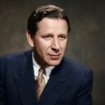 Pečlivě restaurovaný a kolorovaný portrét muže zachyceného v klidné a důstojné póze před tmavým ateliérovým pozadím. Výrazná tvář, uhlazený účes, tmavý oblek a kravata podtrhují elegantní dobový charakter snímku. Fotografie působí jako kvalitně obnovený historický portrét s důrazem na přirozené tóny pleti, jemné světlo, realistické detaily a nadčasovou atmosféru.