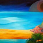 Upravená fotografie skutečné ruční malby, vlastne jde o fotomotnáž protože palmička neni původní součástí obrazu ale fyzická.