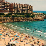 Obraz „Letovisko ve Středomoří“ zachycuje typickou prázdninovou scenérii jižní Evropy v době, kdy letní dovolená u moře měla své osobité kouzlo. Na široké písečné pláži odpočívají desítky lidí, další se koupou v průzračné vodě a nad celou zátokou se zvedá pobřežní zástavba s apartmánovými domy a hotelovými objekty. Skalnatý okraj pobřeží, jemné vlny a syté barvy moře vytvářejí silnou atmosféru slunce, odpočinku a bezstarostného léta.