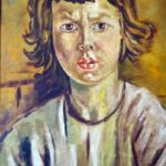 Digitální reprodukce původní olejomalby zachycující expresivní portrét dívky, restaurovaná pomocí první verze technologie COREX Remastering pro zvýraznění textury plátna a hloubky barev.